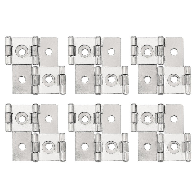 - Specification: Item: Double Acting Hinges; Material: Iron; Color: Nickel silver; Unfolded Size: 47x47x1mm/1.85x1.85x0.04inch (LxWxT) Mounting Hole Diameter: 4.7mm/0.19inch Folding Size:47 x 27 /1.85" x 1.06" (L*W) Shaft Thickness: 5mm/0.2inch; Package Includes: 6Pcs x Double Acting Hinges