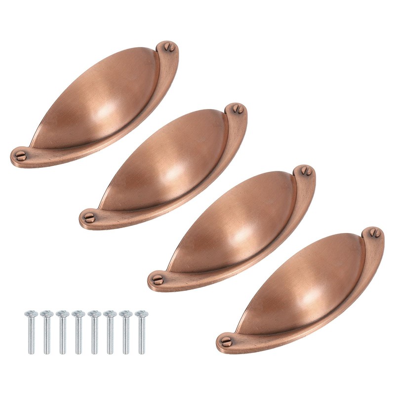 sourcing map Drawer Pulls, 4Pcs 2-1/2" - Zinc Alloy Brushed Cup Pulls with Screws, Cabinet Hardware Handles Dresser Shell Pulls for Bathroom Kitchen (Red Bronze)