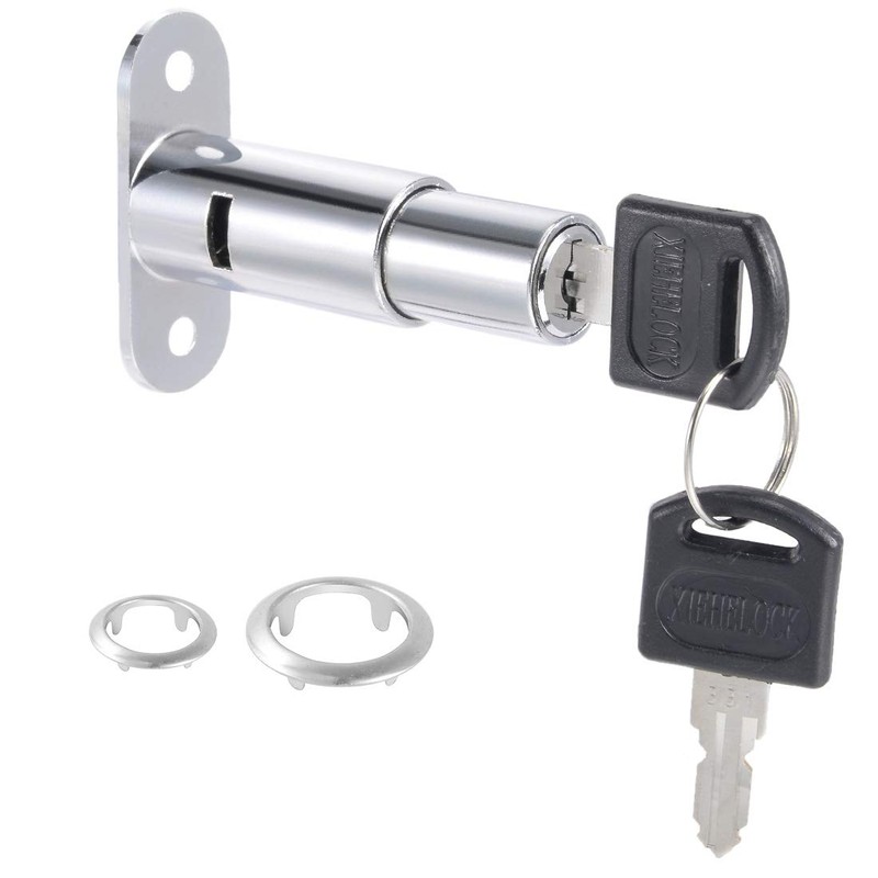 sourcing map Drawers Desk Wardrobe Push Piston Lock 3/4 Inch Cylinder Diameter 1-1/2 Inch Cylinder Length Zinc Alloy Chrome Surface Equal Key