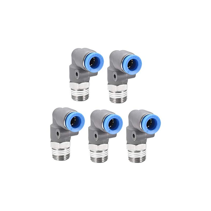sourcing map Elbow Push to Connect Air Fittings 8mm Tube OD X 1/4PT Male Thread Pneumatic Quick Release Connectors Grey 5Pcs