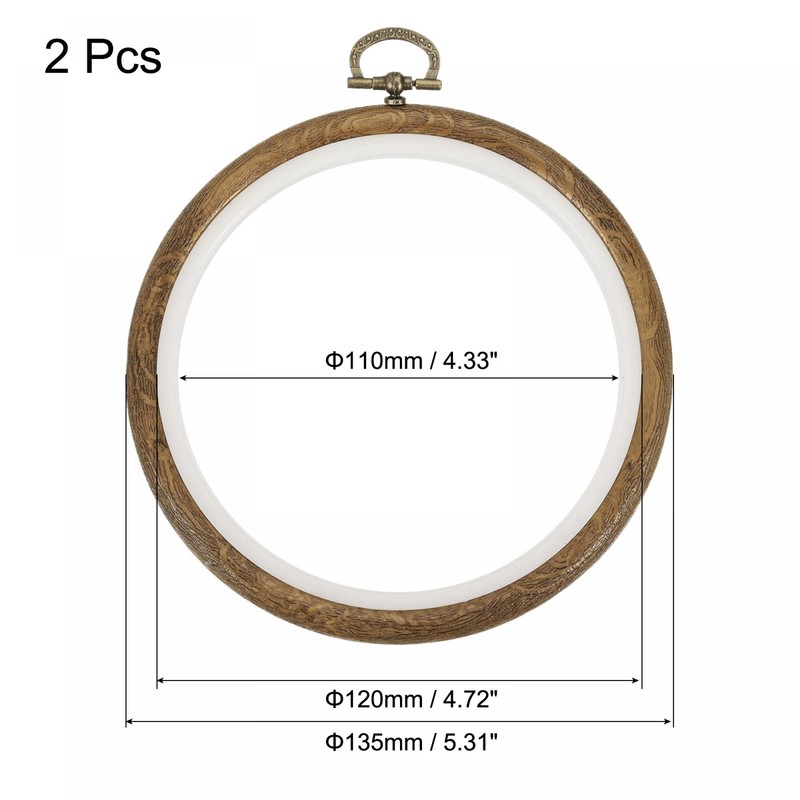 sourcing map Embroidery Hoop Frame 4.7 Inch Round Imitated Wood Circle Cross-Stitch Ring for Art Craft Sewing Ornament, Pack of 2