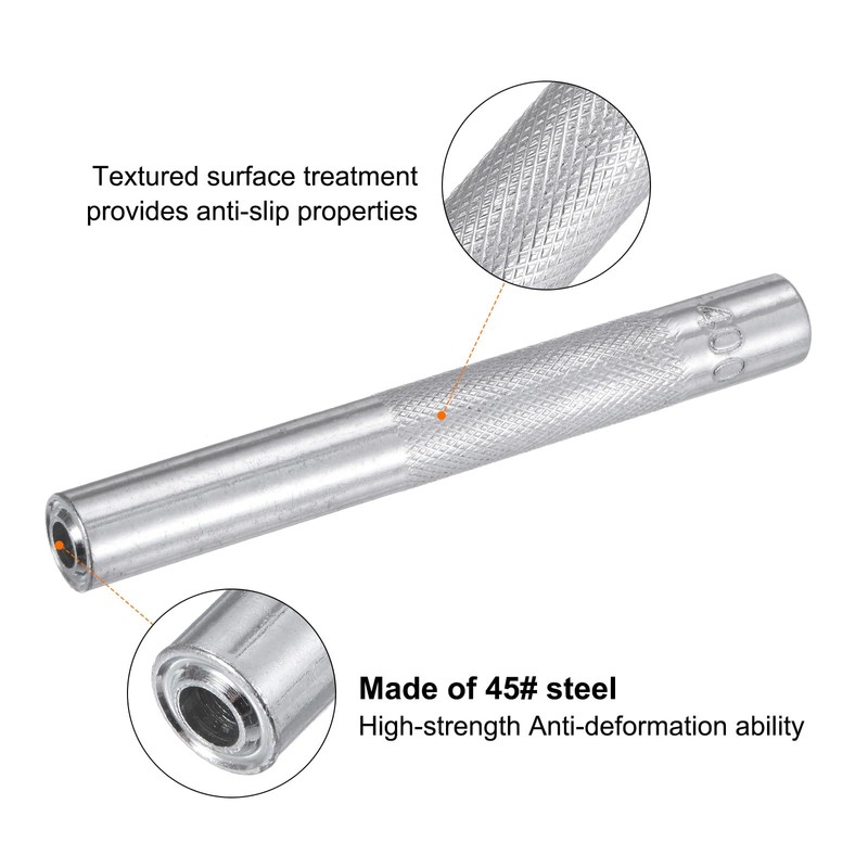 - Features - The grommet setting kit features a unique textured surface treatment that provides excellent anti-slip properties and is comfortable to hold, allowing the user to hold the tool more securely when installing the grommet.