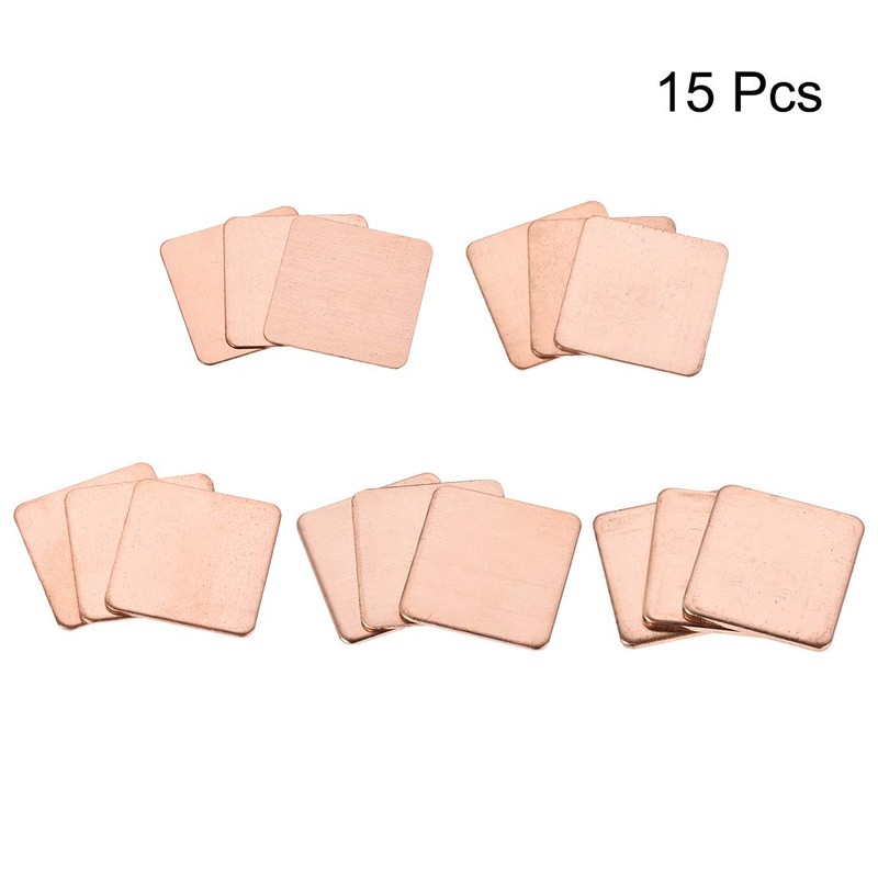 sourcing map Flat IC Chipset Thermal Copper Heatsink for CPU GPU RAM 20 x 20mm with Thickness 0.3/0.5/0.8/1.0/1.5mm Total 15pcs