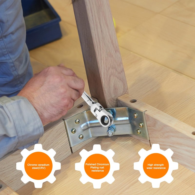 5. The flexible ratchet wrench is widely used, suitable for automotive repair and maintenance, pipeline installation and repair, mechanical assembly and repair, furniture assembly and DIY projects, etc., to meet your needs.