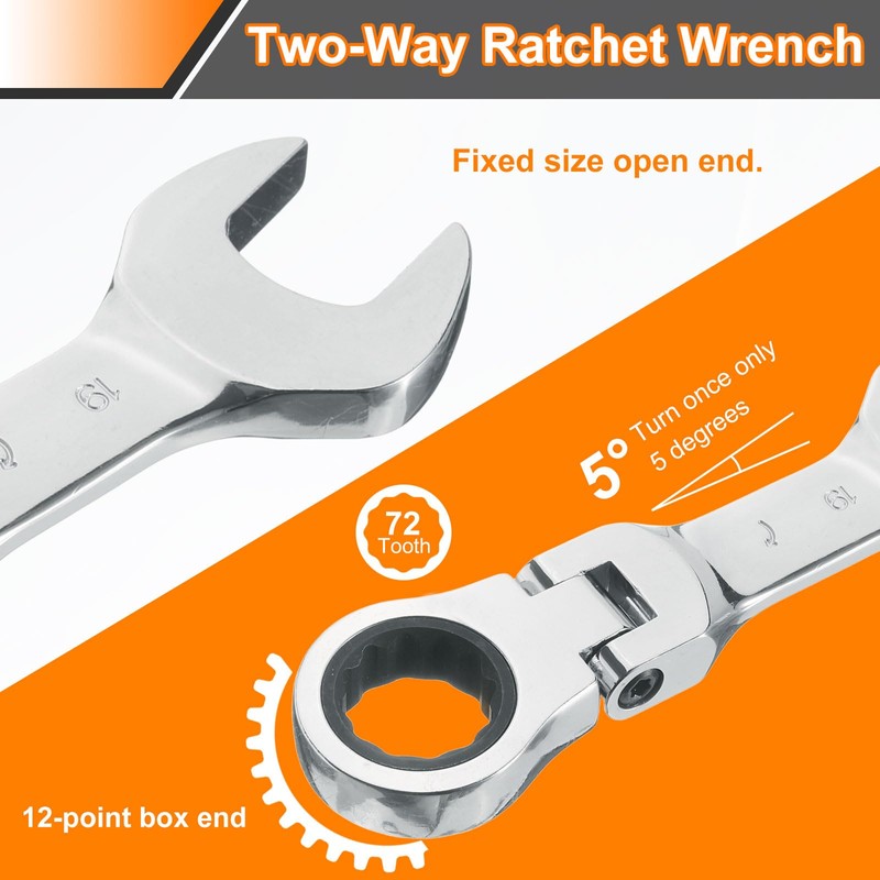 - Feature - 180° flex head of metric ratchet combination wrench can reach the most difficult-to-reach fasteners, and can achieve maximum flexibility and ease of use in a small space. Its anti-slip tooth design provides a firm grip, fits tightly to the fasteners, prevents sliding.
