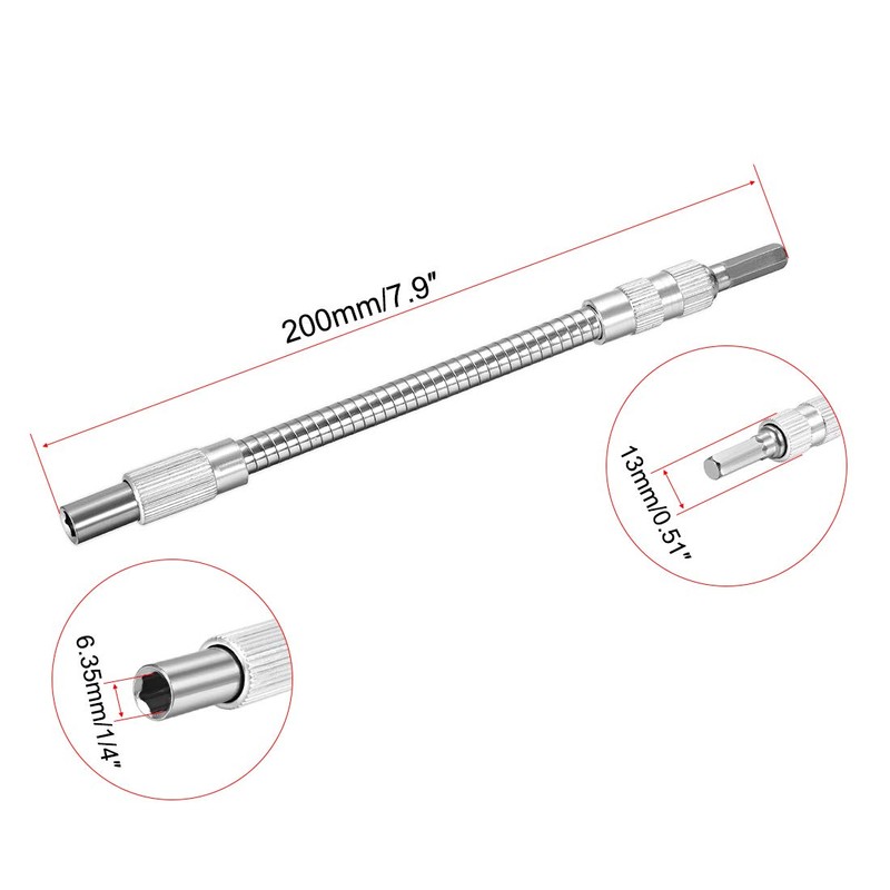 sourcing map Flexible Extension Screwdriver Bit Holder Magnetic Extention Hex Shaft Screw Drill Connection Tip,7.9-inch Flex Shaft,1/4''-Hexagon Drill