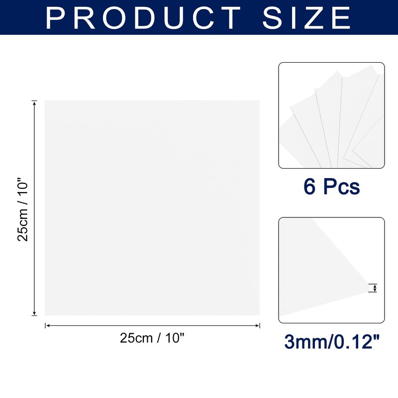 - Color: White; Length: 25cm/10 inch; Width: 25cm/10; Thickness: 3mm/0.12 inch; In the package of 6 x EVA Foam Sheet