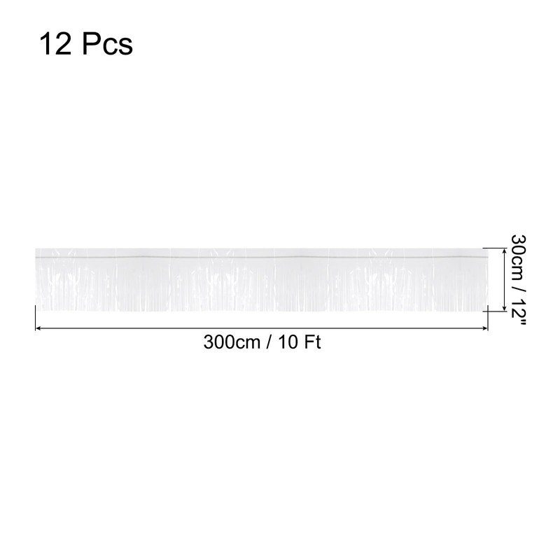 - Product Name : Foil Fringe Garland Material: Metallic Foil Size: 30cm x 300cm / 12" x 10ft (W x L) Color: White Adhesive: Self Adhesive In Packing: 12pcs x Foil Fringe Garland;
