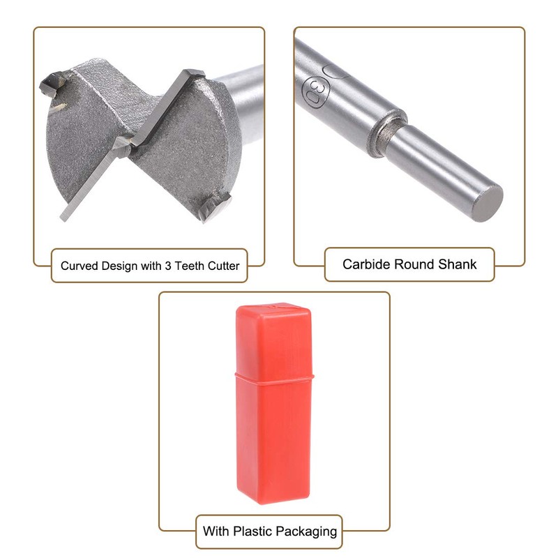 The tip is specially designed to cut through hole cleanly, great for boring concealed hinges and door locks.