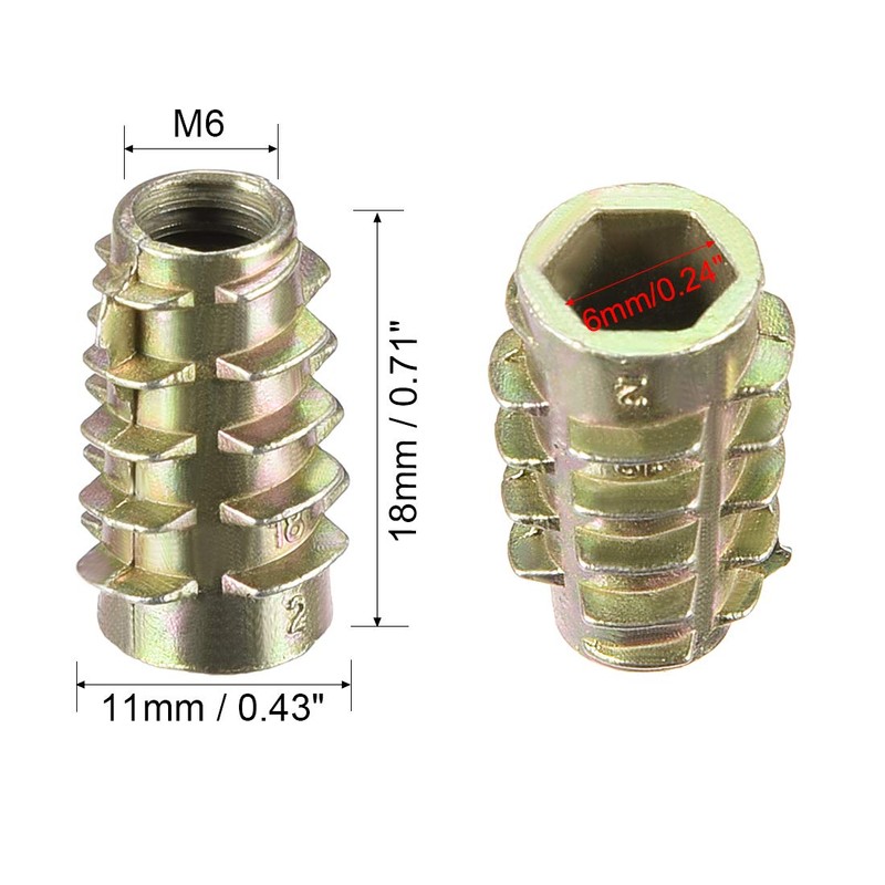 - Internal Thread Size: M6; Nut External Diameter: 11mm/0.43"; Length: 18mm/0.31"; Applicable Drill Size: 8mm/0.31"