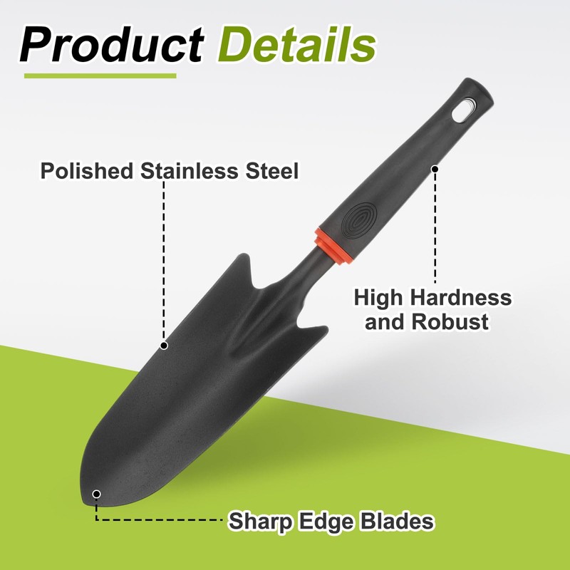 - Material - Our gardening trowel is made of carbon steel, rustproof and corrosion-resistant; this gardening hand trowel will not deform, bend or break during use, ensuring long-lasting durability to meet all your gardening needs.