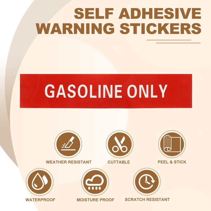 - The package contains 30 pieces of Gasoline Only stickers, which are of the following size: width: 4 cm (1-3/5 inch), length: 20 cm (7.9 inch). it is red with white lettering