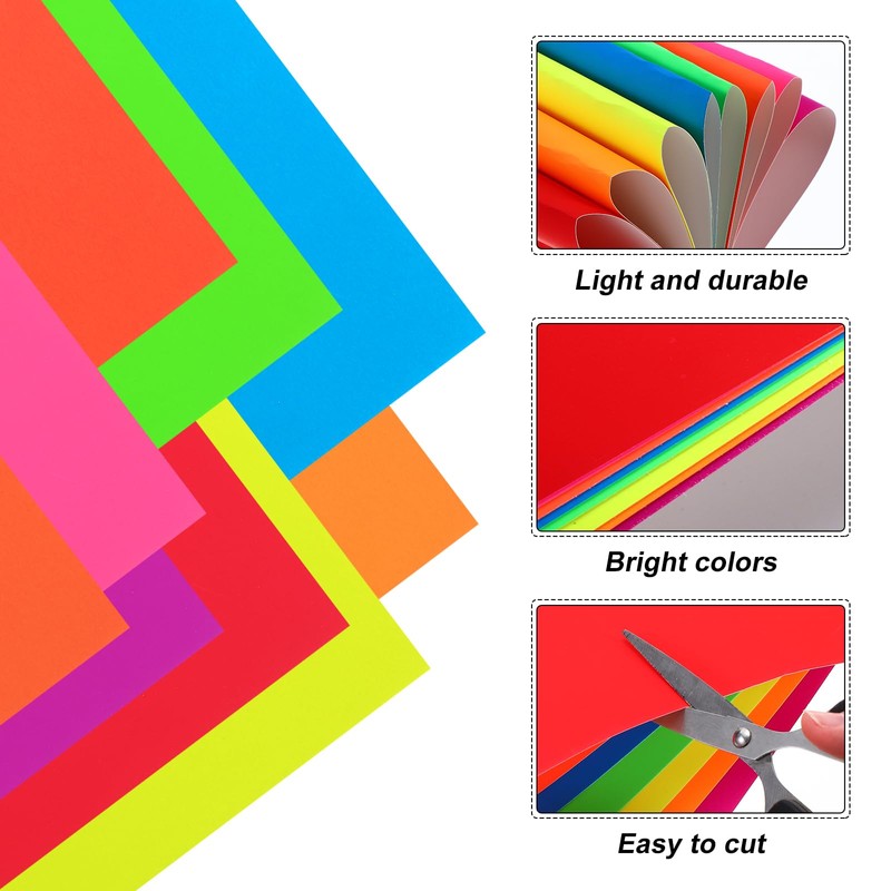 These neon cardstock papers are perfect for DIY, black light glow party dance floor decorations, neon theme parties, birthdays, weddings, growth parties, stage decorations, anniversaries, Halloween, New Year's Eve, carnivals, dance parties and any other joyful events, can be hung on walls, ceilings, trees, tables, also can be used as charming curtains, window decorations in black light rooms.