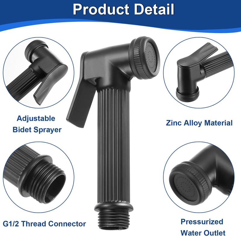 - Material: The bidet sprayer is made of zinc alloy, durable and corrosion-resistant. The copper core enhances the product's durability and ensures efficient water flow.
