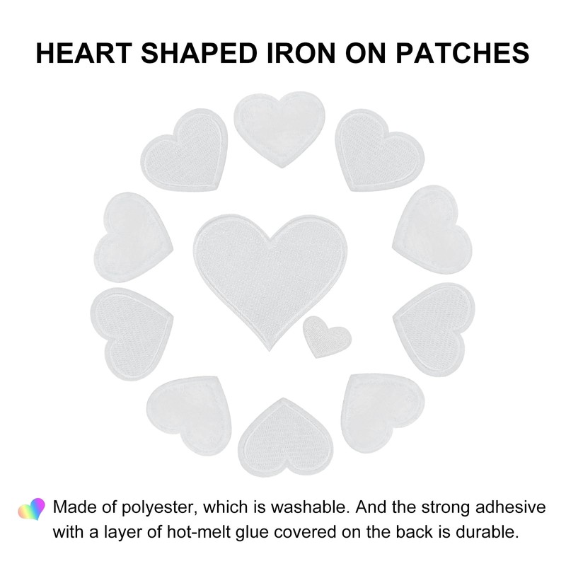 sourcing map Heart Shaped Iron on Patches 2.5/4/7x2/3.5/6.8cm Embroidered Sew Patches Appliques Garment Embellishments for Clothing Repair Backpack Shoes Decoration White 30Pcs