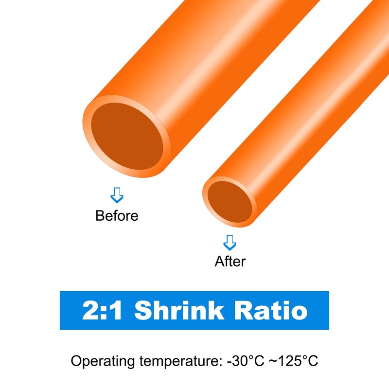 - Heat Shrinkable Tubing Sleeve: Inner Diameter(Before Heated): 25mm / 1 Inch; Length: 10m / 33 ft; Shrinkage Ratio: 2:1; Working Temperature: -30℃ to 125℃; Shrink Temperature: 100℃; Thickness: 0.20±0.05mm; Material: Polyolefin