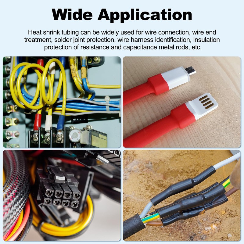 - Heat shrink tubing is a versatile and essential material used for electrical insulation, cable protection, and wire management. Made from polyolefin material which is heat-sensitive makes it easy to shrink tightly around wires and connections when heated, providing a secure and professional finish.
