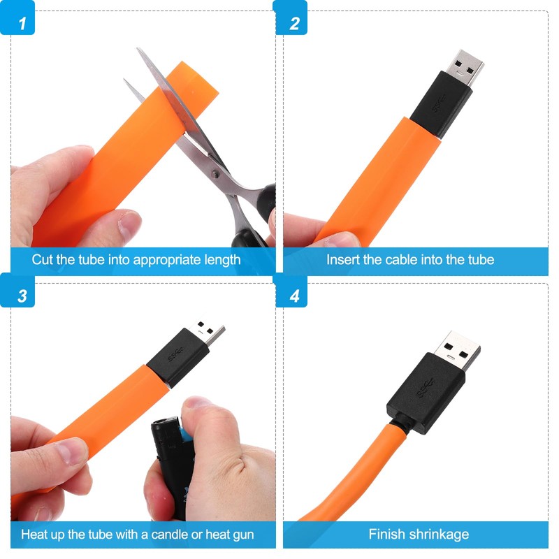 - Please ensure tubing is properly positioned before applying heat to avoid misalignment; Use a heat gun for even heating to prevent damage or uneven shrinkage.
