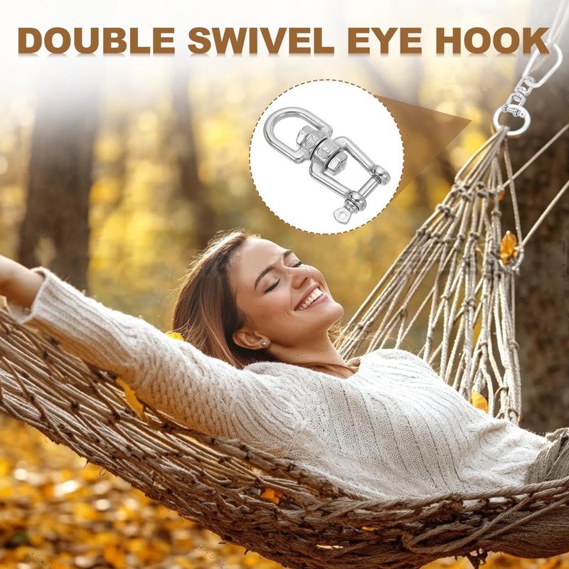 Hanging rotating hook made of 304 stainless steel, solid connections with a polished finish, strong and durable,rust-proof, no burrs edges. 360-free rotation to prevent ropes or chains from twisting and tangling.