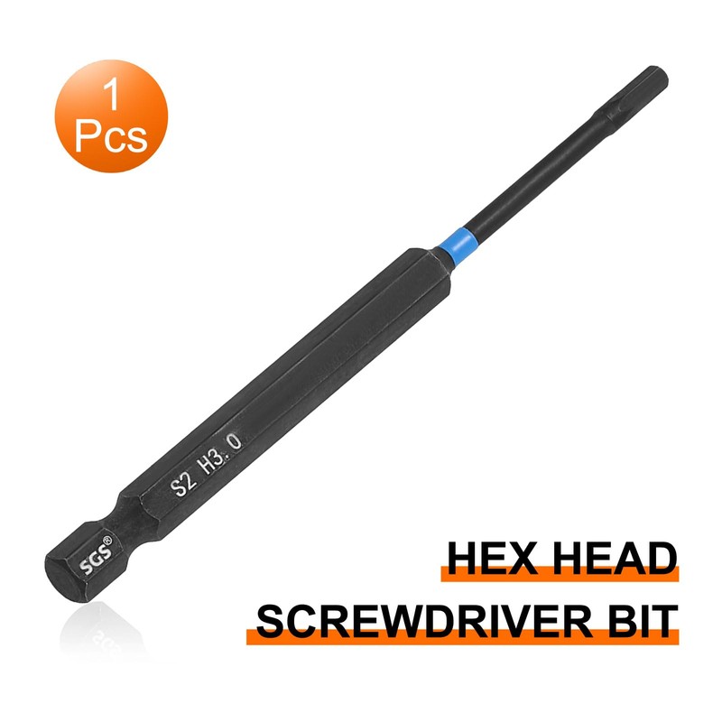 - Size - Metric hex head size: 3mm (H3), hex shank size: 1/4", total length: 100mm / 4", hardness: HRC60-61 (The recognized stable hardness is around HRC60.). Each hex screwdriver bit is clearly engraved with size number for easy identification.