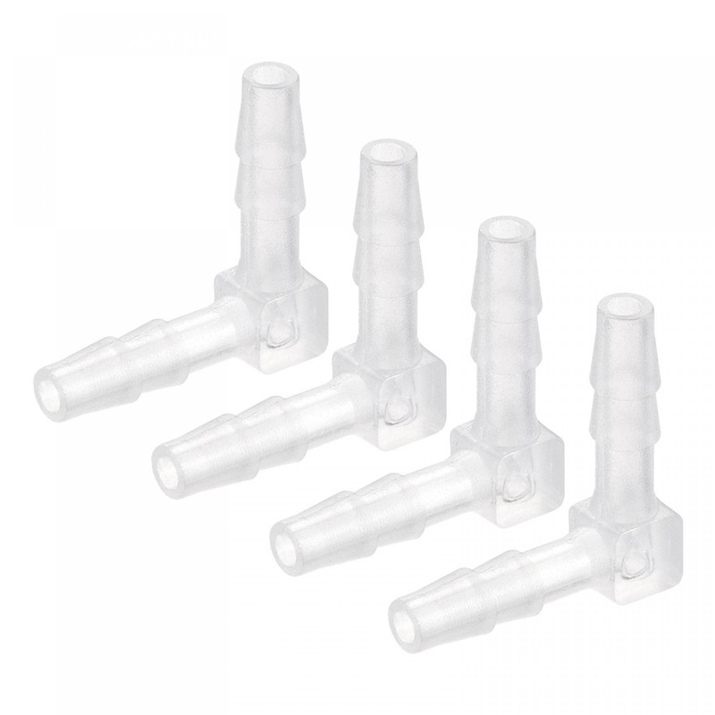 sourcing map Hose Nozzle 5 mm Barbed Wire Diameter Plastic Angle Coupling Quick Coupling Adapter White Pack of 4