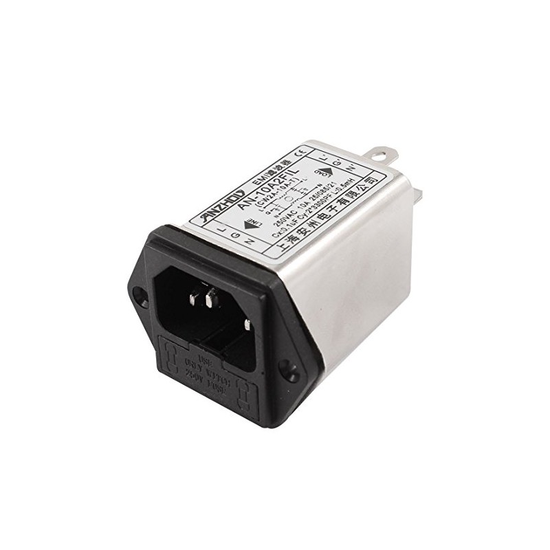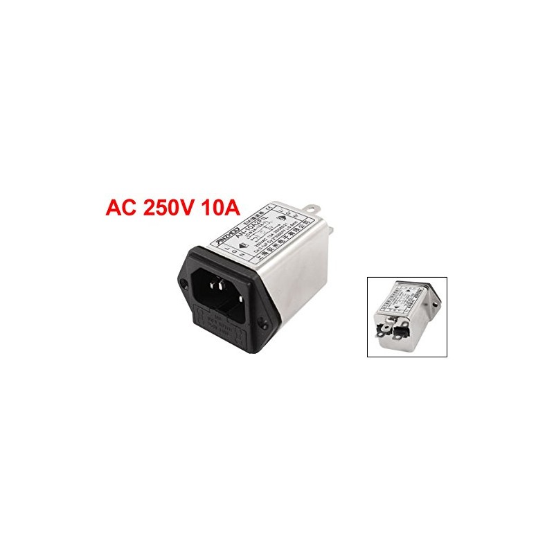 sourcing map IEC C14 Male Socket Panel Mount Fused Power Line EMI Filter AC250V 10A