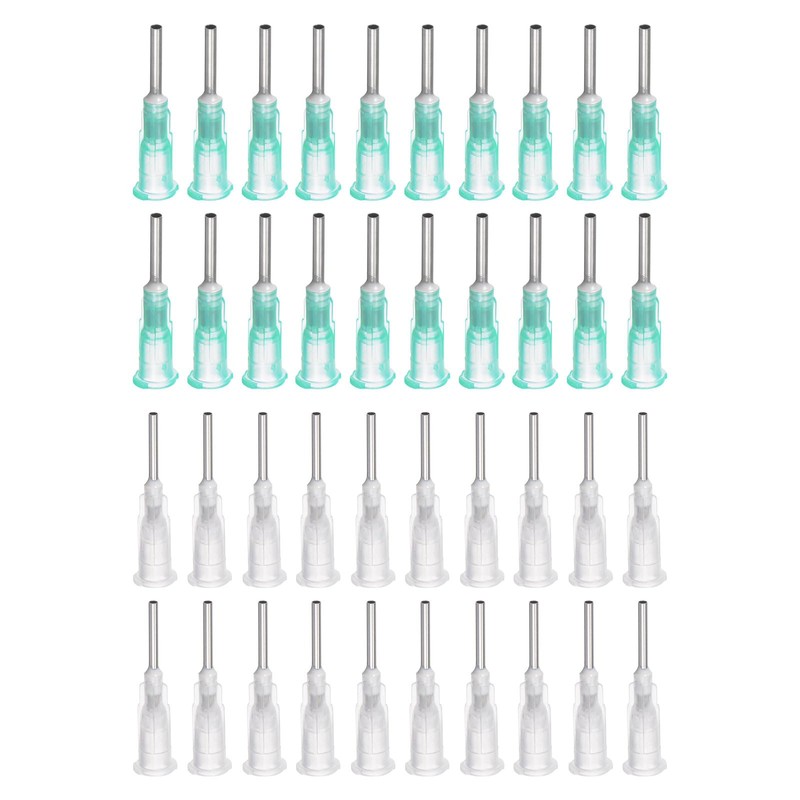 - Industrial Blunt Tip Dispensing Needle set contains 20 Pcs 14G 1/2" and 20 Pcs 16G 1/2" (Light Green + Transparent).