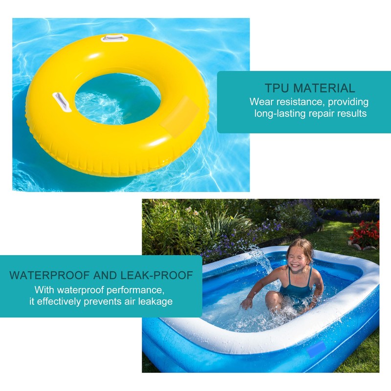 - The inflatable patch repair kit is made of high-strength TPU material, which is waterproof and high-temperature resistant, self-adhesive, and does not require glue. It is a practical patch for repairing holes. You can cut the size freely to repair small holes. It works well even in hot summer and will not peel off due to high temperature expansion.