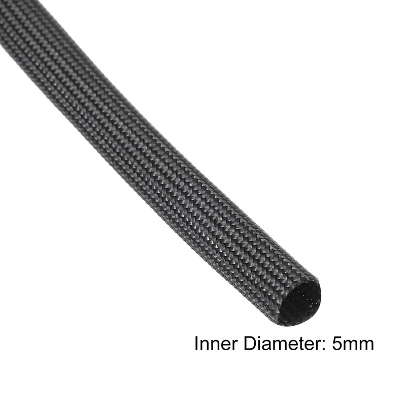 - [PARAMETER] Material: Alkali-free Fiberglass; Length: 5.0 Meter / 16.4 Feet; Inner Diameter: 5mm; Thickness: 0.3mm; Working Temp Range: –30℃~+600℃; Working Voltage: 500V~800V; Flame Resistance: VW-1.