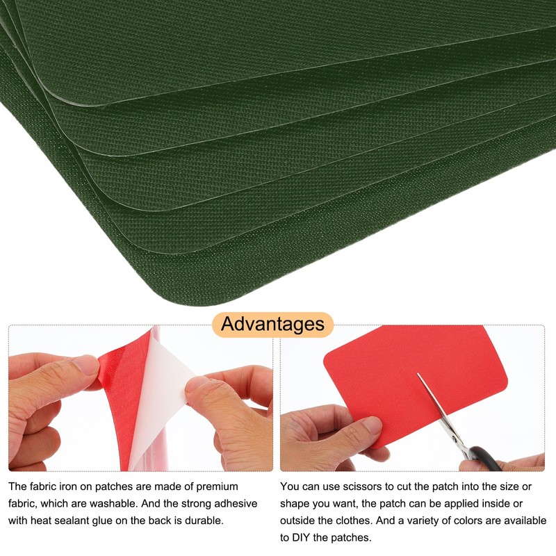 - The fabric patches, we provide here, are in the size of:Total Length: approx. 125 mm/4.9";Total Width: approx. 95 mm/3.7";Material: Fabric;Color: Army Green;In the package of: 18Pcs x Iron-on Patches.