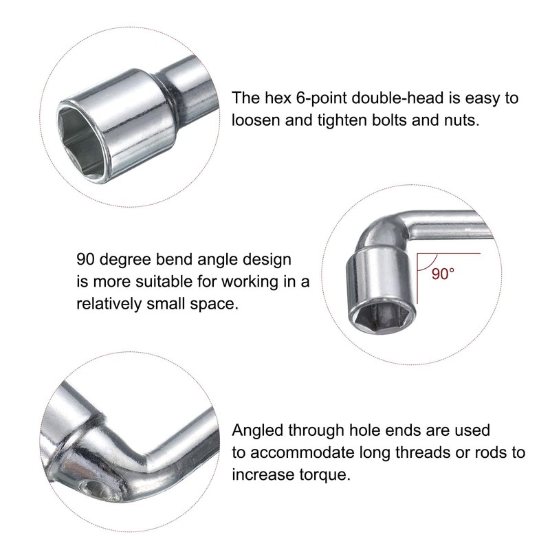 - Material - The L-shaped handle socket wrench is made of 45# Steel material, with high hardness, good toughness, wear resistance, stability and durability, chrome on the surface, with corrosion resistance.