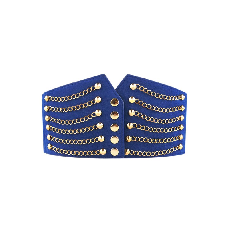 sourcing map Lady Rivet Chains Decor Button Fastener Waist Belt 64cm Length Blue