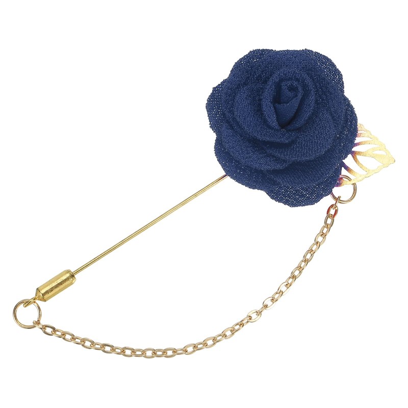 - The navy blue cloth, alloy rose lapel stick , is in the size of: Flower Dia: 4cm / 1.57inch, Chain Length: 8 cm / 3.15 inch, Stick Length:5.5 cm / 2.17 inch,weight: 4 g / 0.01lb, In the package of: 1 x Rose Lapel Stick