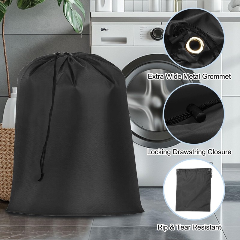 sourcing map Laundry Bag with Drawstring Closure, 27"x22" Dirty Clothes Bag with Handle Washable Laundry Hamper for Travel Camping and Outdoors Black