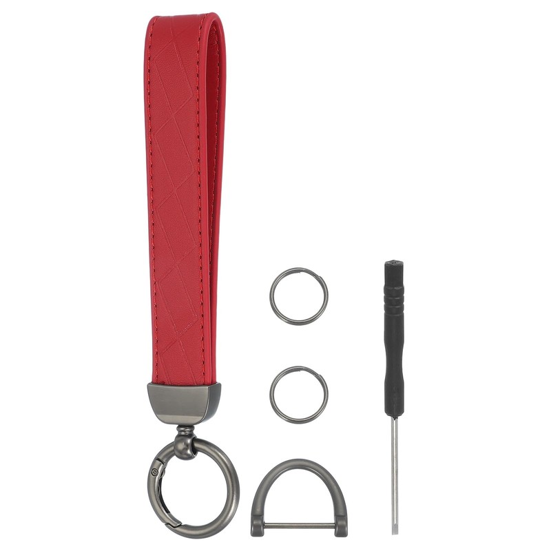 sourcing map Leather Wristlet Keychain Car Key Chain Wristlet for Women, 7 Inch Key Fob Holder with D Ring and 2 Key Ring for Keys Wallets Purse, Black/Red