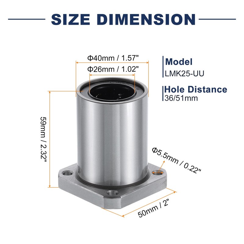 - [SIZE] - Model: LMK25-UU, 26x40x59mm Metric Double Seal Chromium Steel Linear Bearing, 48mm Round Flange Base