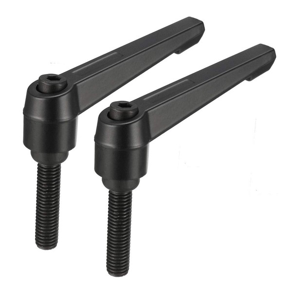 sourcing map M10 x 40mm Handle Adjustable Clamping Lever Thread Push Button Ratchet Male Threaded Stud Knobs Rotating Screw Handles Bolts with Locking Lever Black 2pcs
