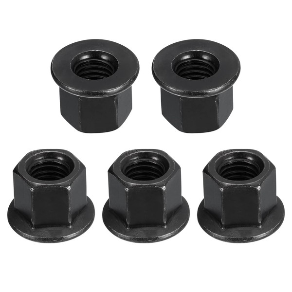 sourcing map M12 Flange Hex Nuts, 5pcs Grade 8.8 Carbon Steel Black Oxide Finished Hex Flange Nuts for Machinery