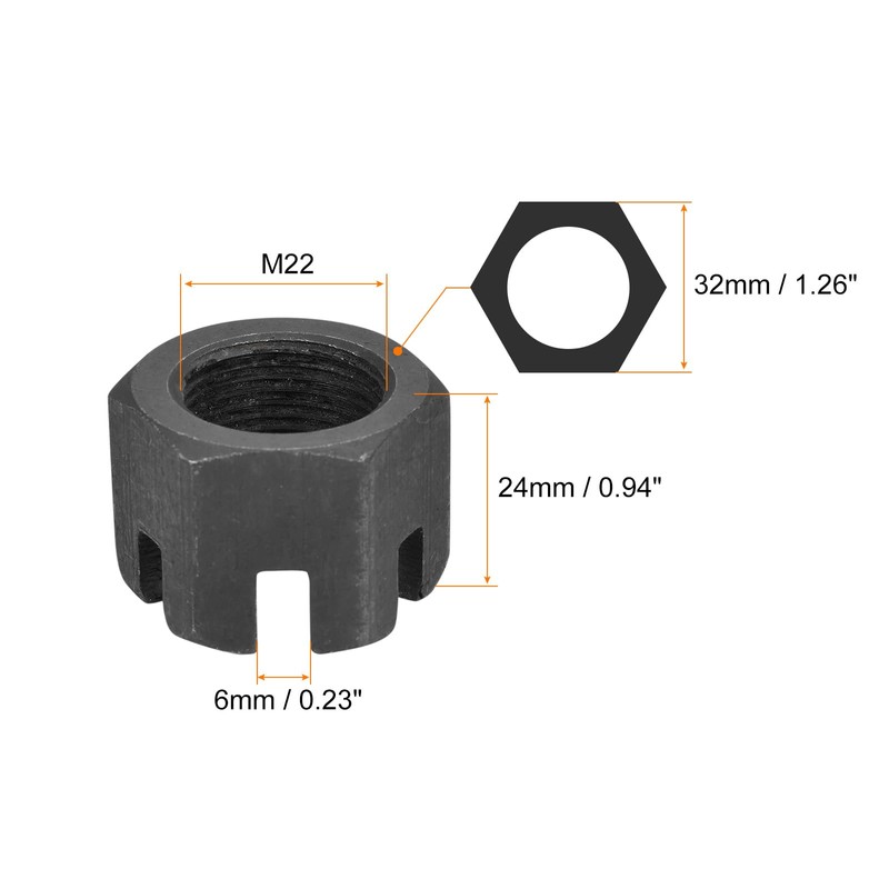 - [Material] - Made of carbon steel with a blackened surface finish, this hex slotted nut is of high hardness, not easy to rust, deform, wear-resistant and anti-corrosion