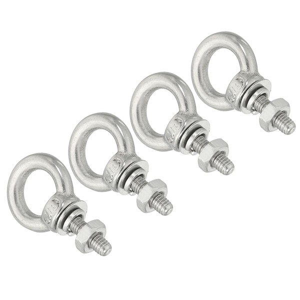 sourcing map M3 1/8"x0.35" Stainless Steel Eye Bolts Threaded Screw Eyebolt Shoulder Ring with Nuts Washers for Lifting Hanging, 4 Set