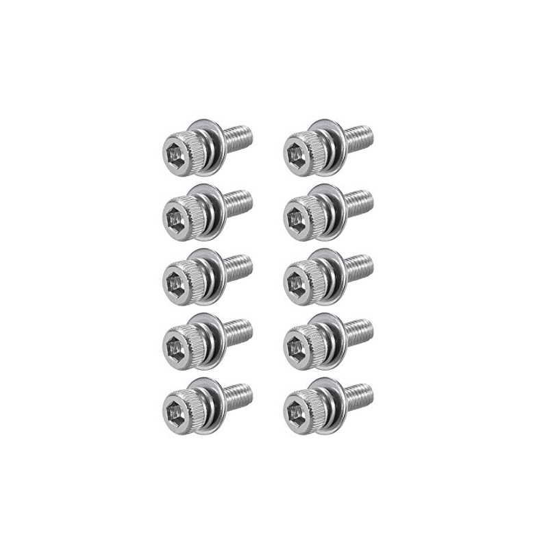 sourcing map M3 x 6mm Stainless Steel Hex Socket Head Cap Screws Bolts Combine with Spring Washer and Plain Washers 10pcs
