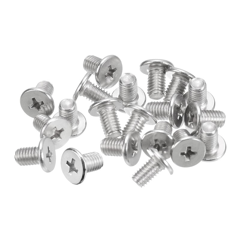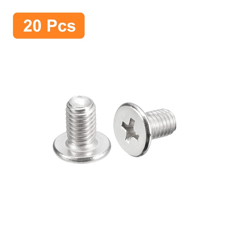 - [Flat Round Head Screw] - Screw Groove Type: Phillips; Finish: Pickling Passivation; Thread Pitch: 0.8mm; Thread Size: M5x8mm/M5x0.31"; Head Diameter: 9.5mm/0.37"; Head Height: 1.3mm/0.05"; Package Content: 20 Pcs x Machine Screws. Please confirm the thread size before purchasing.