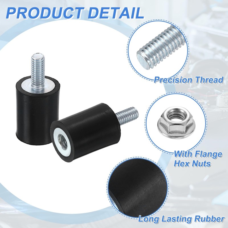 - Material: The shock absorber mount is made of rubber and zinc-plated metal, and the flange nut is made of 201 stainless steel. The rubber and metal are firmly bonded and not easy to fall out. The vibration isolator mount is strong, wear-resistant, corrosion-resistant, not easy to break or rust, the thread is smooth and burr-free, and can be used for a long time