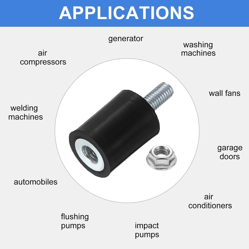 Installation - The rubber mount comes with flange hex nuts. The installation of the anti vibration isolator is simple, just put the equipment hole in the screw and tighten the nut of the isolator mount. As a damping element for welding machines and other equipment, the damping and noise reduction effects are very obvious. It can protect the normal state of the equipment and ensure a good working environment.