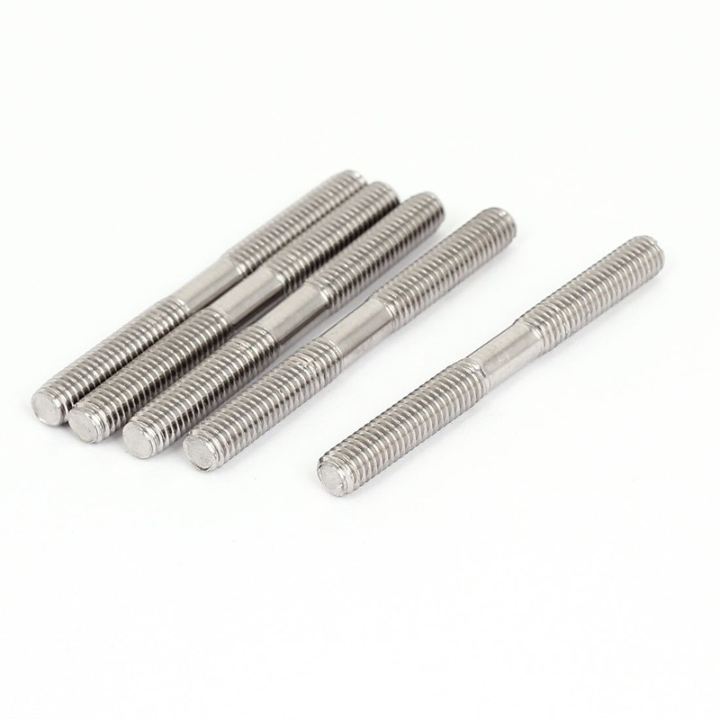 sourcing map M6x60mm 304 Stainless Steel Double End Threaded Stud Screw Bolt 5Pcs