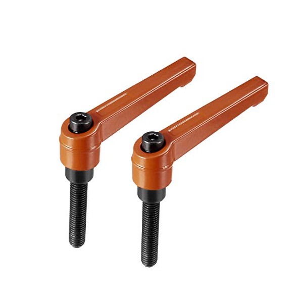 sourcing map M8 X 40mm Handle Adjustable Clamping Lever Thread Push Button Ratchet Male Threaded Stud Knobs Rotating Screw Handles Bolts with Locking Lever Orange 2pcs
