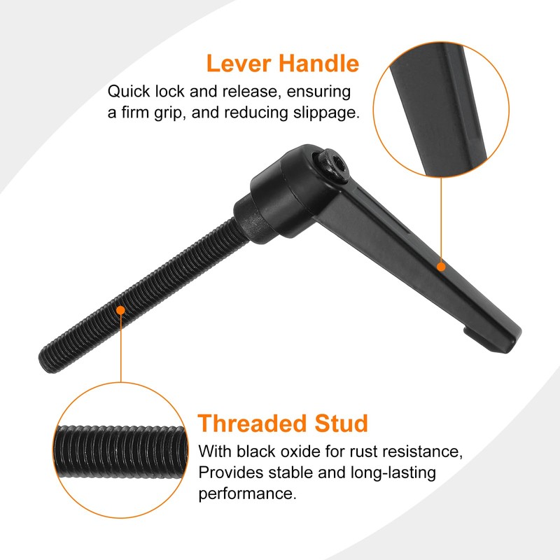 - Durable Material: The clamping lever handle is made of alloy steel, which is strong, wear-resistant, and durable. The threaded outer stud is coated with black oxide for rust resistance. Provides stable and long-lasting performance in various machinery and equipment applications.