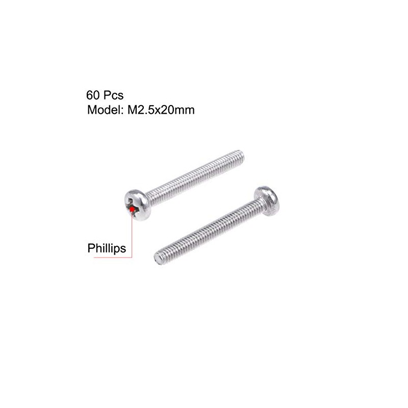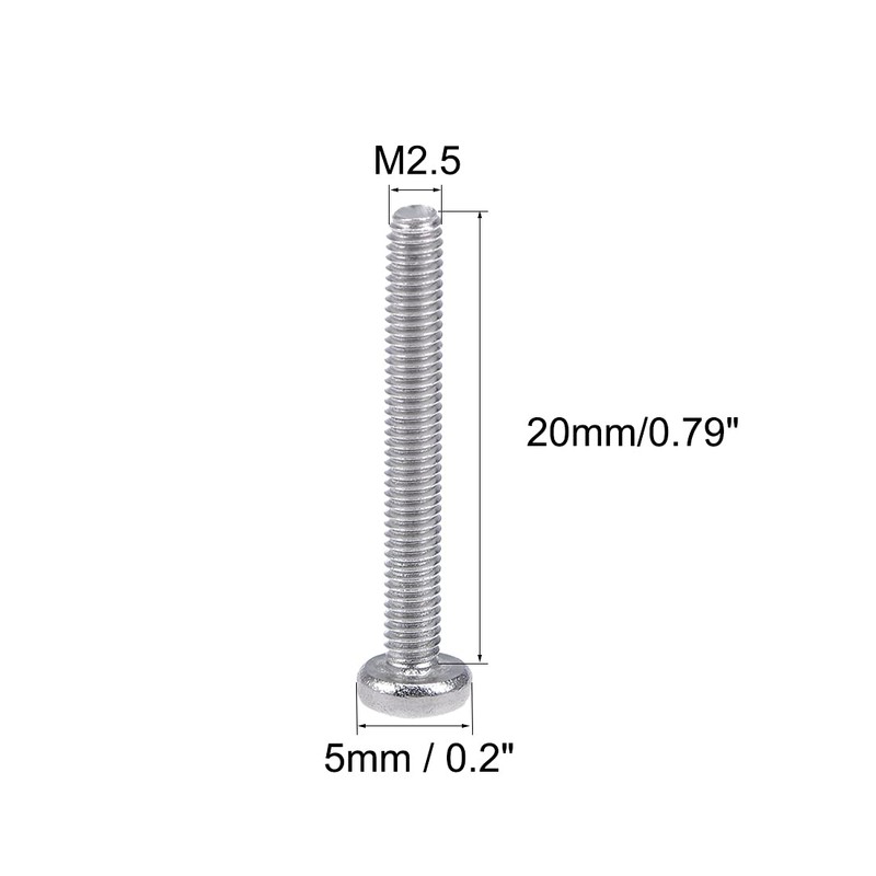 - Model: M2.5 x 20 mm; Material: 304 Stainless Steel; Screw Length: 20 mm/0.79 "; Spacing: 0.45 mm/0.018"; Screw Head Diameter: 5 mm/0.2 "; Screw Groove: Cross