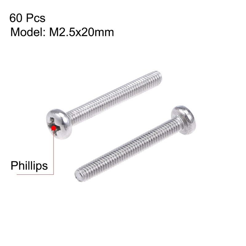 sourcing map Machine Screws Phillips Head Screws M2.5 x 20 mm Pack of 60