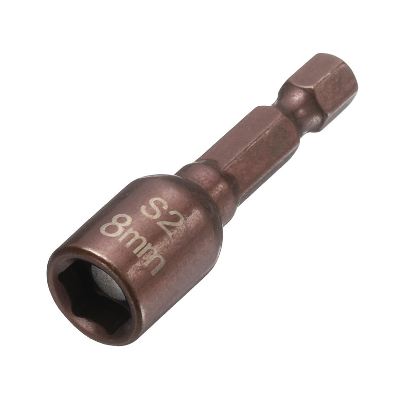 - Size - The 6-point socket size is 8mm, the hex shank is 1/4", and the overall length is 1.77" (45mm).